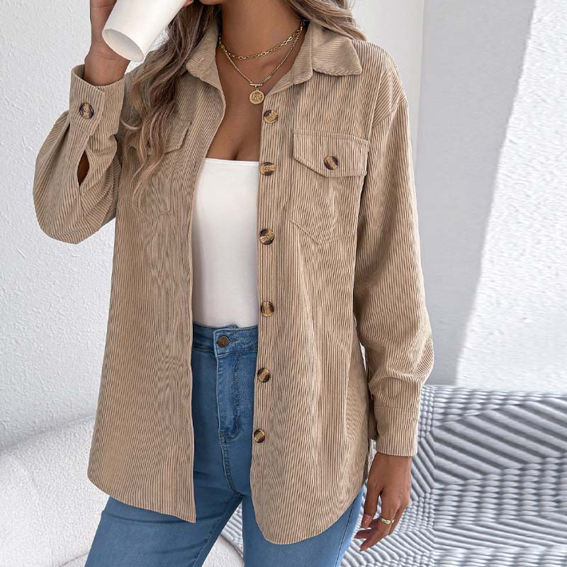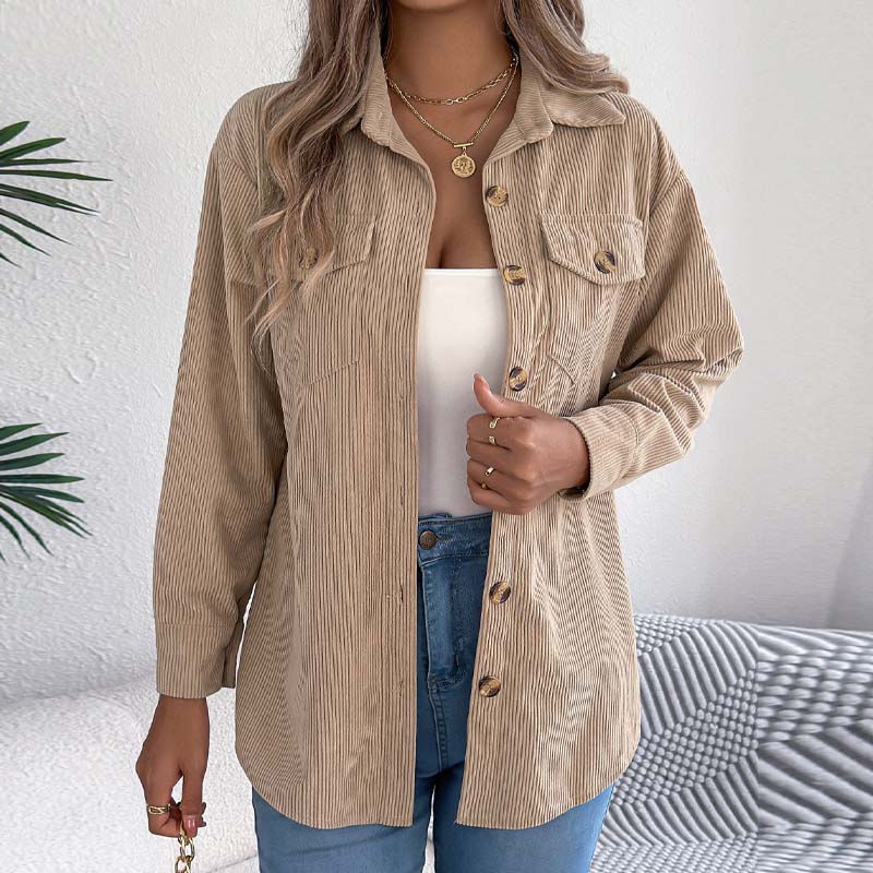 CORDUROY-Stoff - Dieses Hemd besteht aus weichem Cord, der sich angenehm und strukturiert anfühlt und sich für verschiedene Jahreszeiten eignet. Die gerippte Oberfläche verleiht dem Kleidungsstück optische Tiefe.