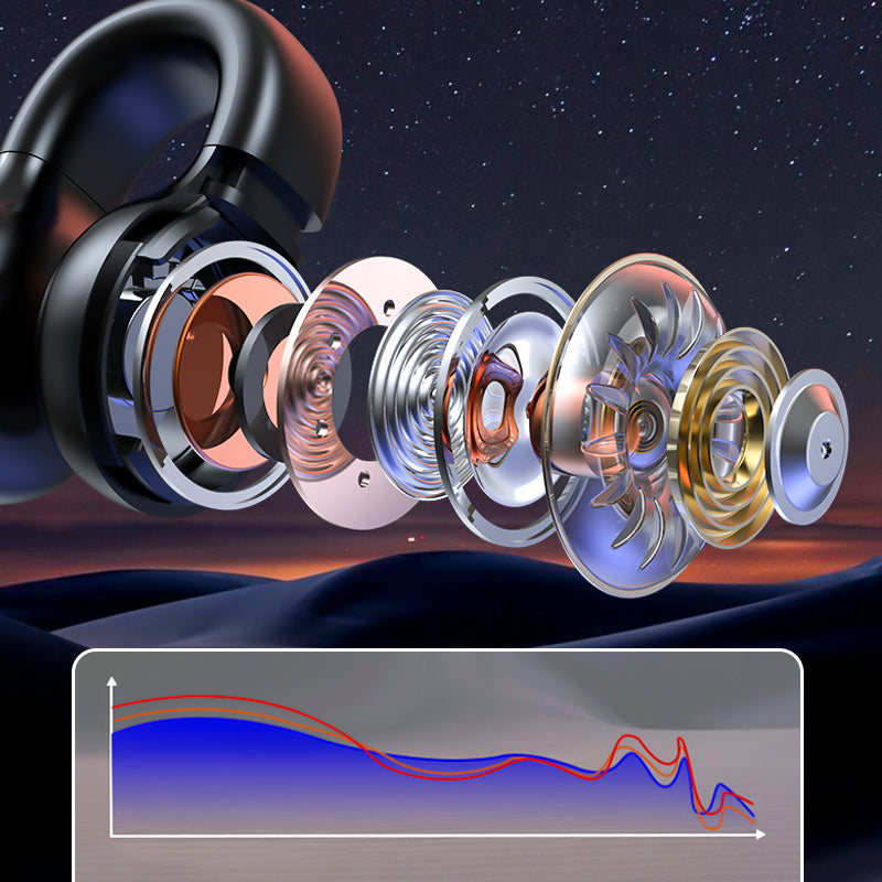 Die kabellosen Ear-Clip-Bluetooth-Sport-Ohrhörer, die mit dem neuesten Bluetooth 5.3 ausgestattet sind, bieten Ihnen eine HIFI-Klangqualität und einen holografischen Soundtrack. In dem Moment, in dem Sie die Kopfhörer aufsetzen, fühlen Sie sich wie in einem großen Konzert, und der umhüllende Klang aller Aspekte war noch nie so angenehm für das Ohr. Außerdem ist er so stabil wie ein kabelgebundener Kopfhörer, was die Kommunikationseffizienz und die Störsicherheit weiter verbessert, den Stromverbrauch reduziert und die Verbindungen stabiler macht.
