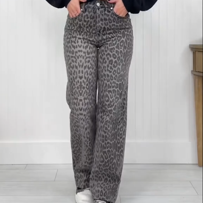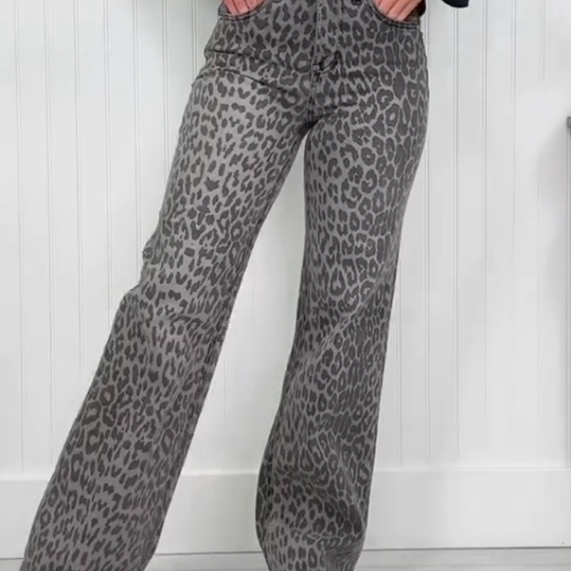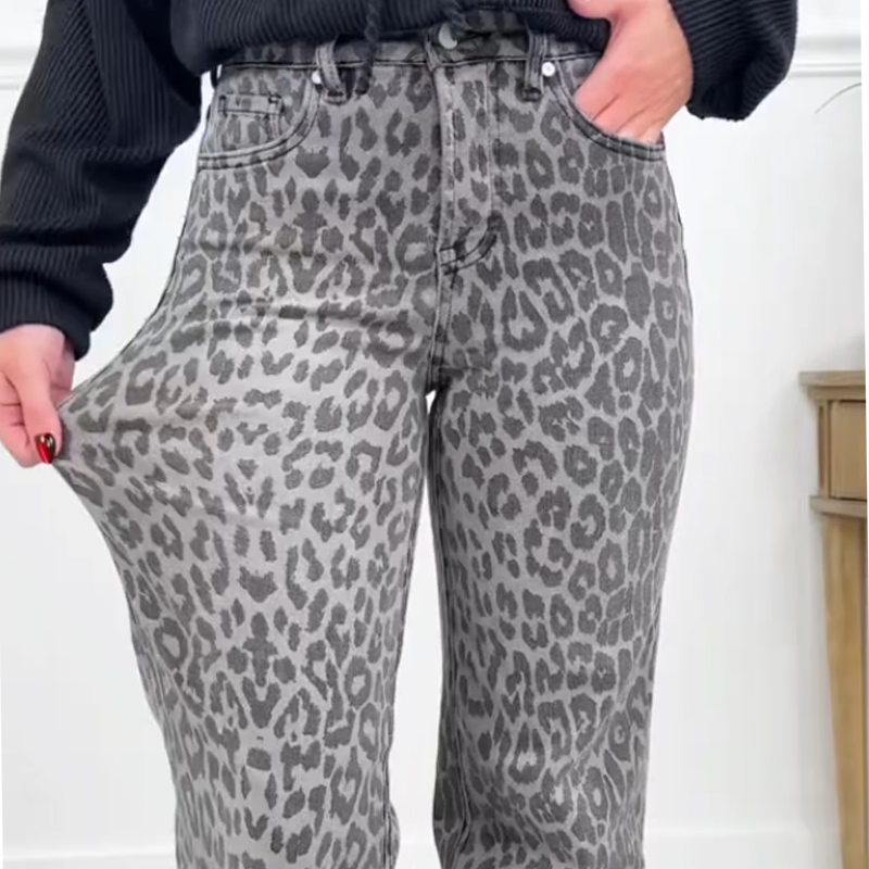 LEOPARD PRINT DESIGN - Fallen Sie auf mit dieser lässigen Damenjeans mit Leopardenmuster. Das stilvolle graue Leopardenmuster verleiht Ihrer Garderobe einen mutigen, trendigen Touch und ist ein auffälliges Statement für jeden Freizeitlook. Dieses einzigartige Muster eignet sich perfekt, um Ihre Persönlichkeit zum Ausdruck zu bringen. Es lässt sich gut mit neutralen Oberteilen oder leuchtenden Farben kombinieren und macht Outfits mühelos modisch.